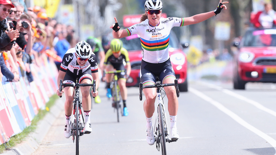 Tardó mucho, muchísimo, en desatarse la tormenta en esta séptima cita del Women’s World Tour celebrada hoy en la bella y accidentada región de Limburgo, allá donde las fronteras un día fueron un foco de gran conflicto y hoy uno puede pasear sin ser realmente consciente de haber caminado hasta por tres países distintos. Pero la cosa fue todo menos un paseo para una Chantal Blaak que se tuvo que exprimir a fondo para conseguir un precioso triunfo ante una más que voluntariosa Lucinda Brand que se tuvo que conformar con la segunda posición.