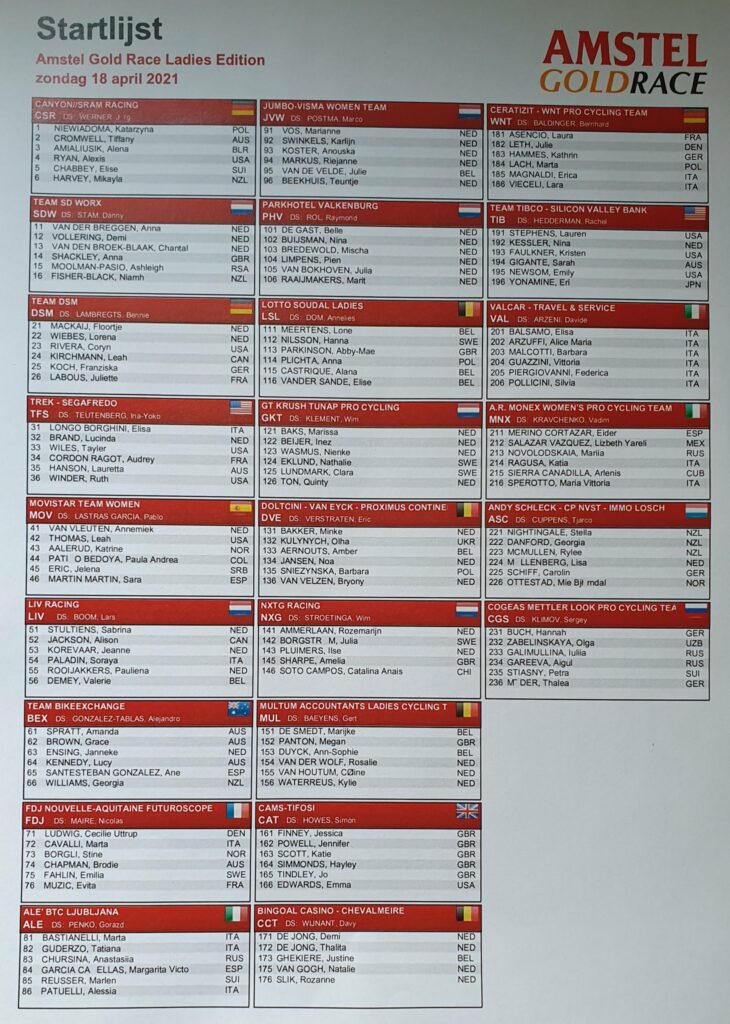 Los encajes de bolillos a los que obligan los últimos coletazos de esta pandemia alcanzan a la Amstel Gold Race, que en 2020 fue suspendida -tuvo fecha en octubre, pero no se pudo celebrar- y en 2021 se ve obligada a celebrarse en un circuito cerrado al público, muy similar al del Mundial de 2012 en Valkenburg, y sobre el que rodarán las mujeres del WorldTour desde muy temprano para que las citas masculina y femenina puedan celebrarse el mismo día.