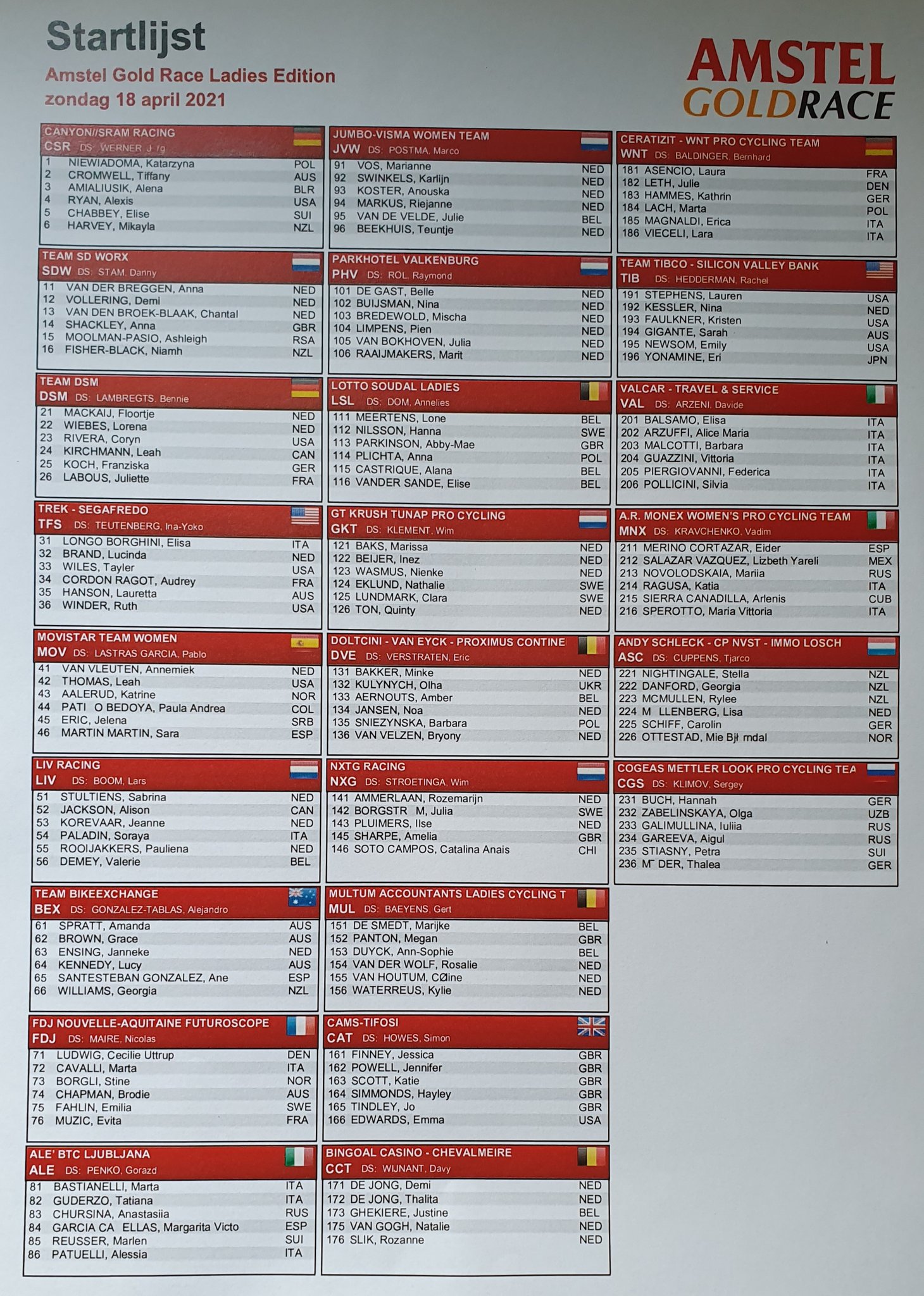 | 74 | Nina Buysman | | Parkhotel Valkenburg | + 9:44 |