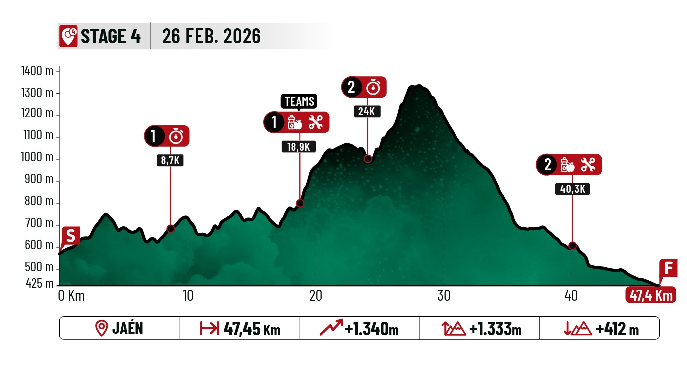 4ª: Jueves 26 febrero. Jaén (47,45 km / +1340 m) (XCM)