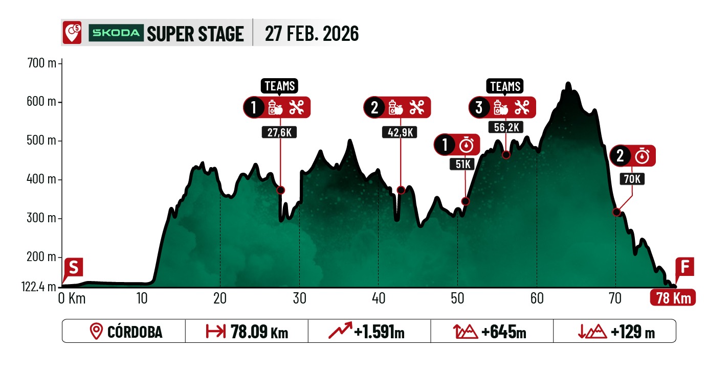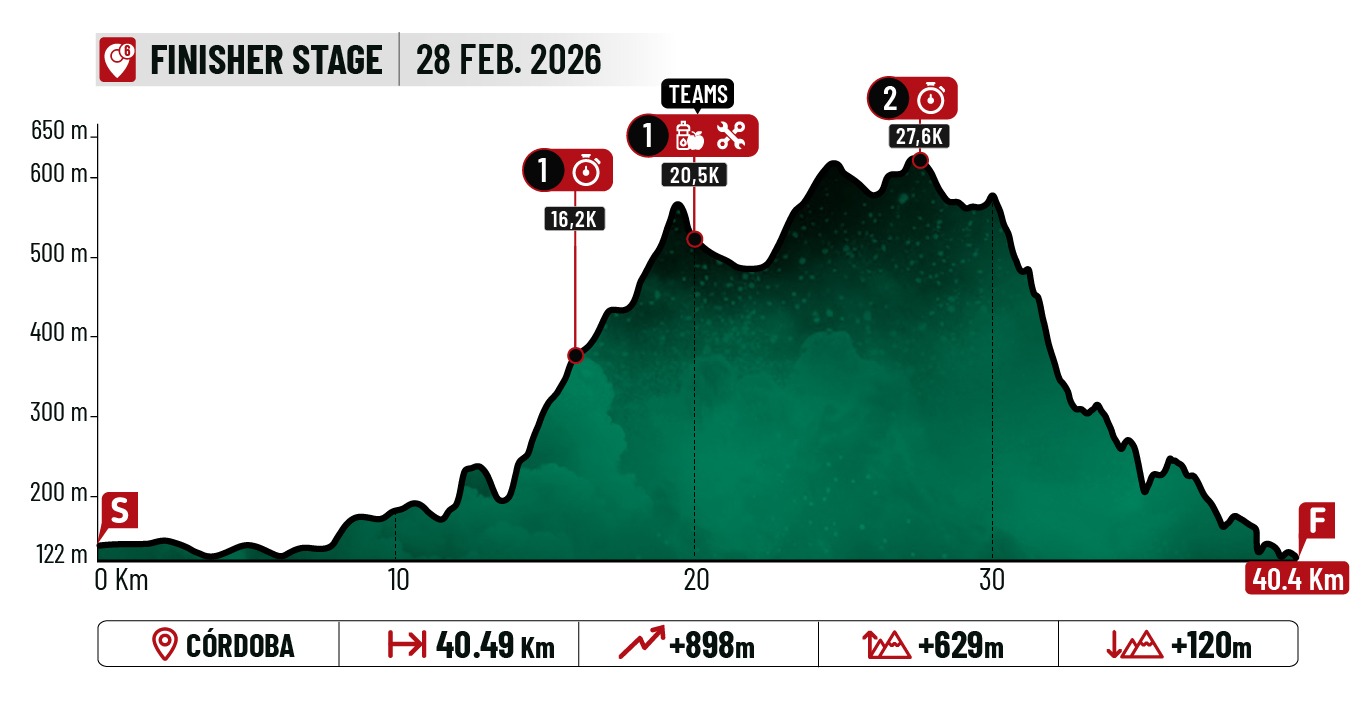Etapa final y explosiva, con un formato muy XCO: corta, intensa y pensada para bikers hábiles en senderos rápidos y técnicos, donde se decidirá la última victoria parcial. La salida enlaza rápidamente con la Vereda de La Alcaidia rumbo a Linares, punto donde arranca la subida del día por la Loma de los Escalones, pasando por el mítico tramo del Arrastraculos, exigente y muy característico de Córdoba.