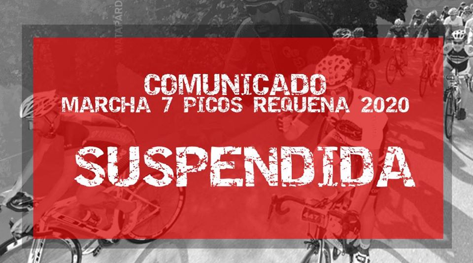 Como os anunciamos ayer, los acontecimientos relacionados con el COVID_19 nos han llevado a la SUSPENSIÓN de la Marcha Cicloturista 7 Picos Highforce Requena 2020, una vez conocidos los decretos tanto de la Generalitat Valenciana en cuanto a eventos deportivos como del Gobierno central -del excepcional Estado de Alarma-, que nos llevan a renunciaá a la celebración de la prueba en este año, 2020.