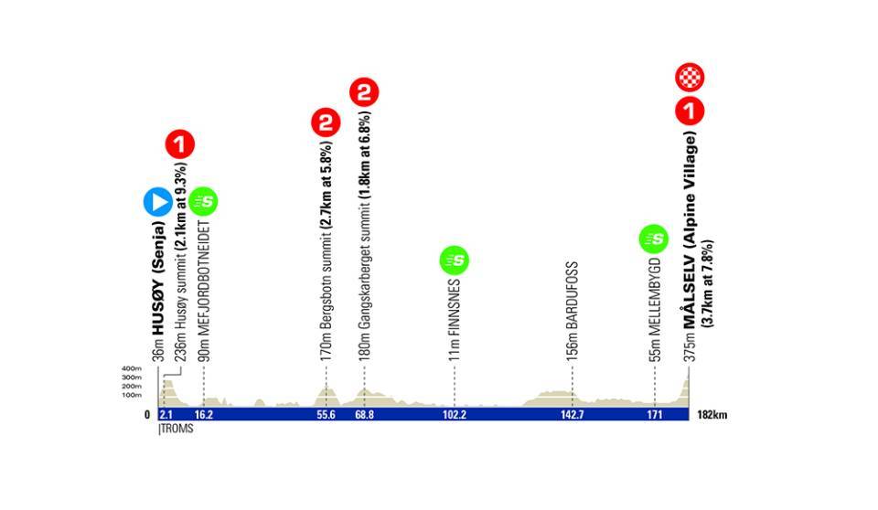 Los aficionados más fieles a la Arctic Race of Norway reconocerán sin duda los paisajes de la tercera etapa. Husøy, una pequeña y encantadora península en el municipio de Senja, será el escenario de una salida entre fiordos. El municipio ya acogió la carrera en 2015 y 2021. El pelotón comenzará a ascender desde el principio (2,1 km al 9,3%). Los corredores que destaquen cuando la carretera se inclina hacia el cielo se enfrentarán hasta la línea de meta, situada tras 182 kilómetros de carretera en Målselv, donde se alzará en lo alto de un ascenso de 3,7 km al 7,8%. Hasta ahora, esta cima ha sido exclusiva de Ben Hermans, que triunfó cuando la carrera se celebró allí en 2015 y 2021. La última vez, ganó la prueba de forma absoluta.