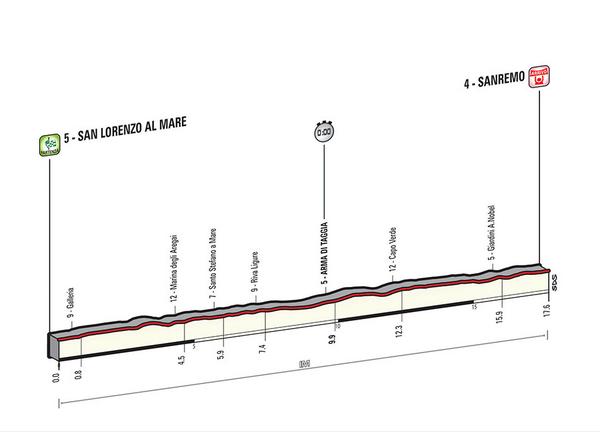 1ª etapa. Sábado 9 mayo. San Lorenzo al Mare – Sanremo. 17,6 kms CRE