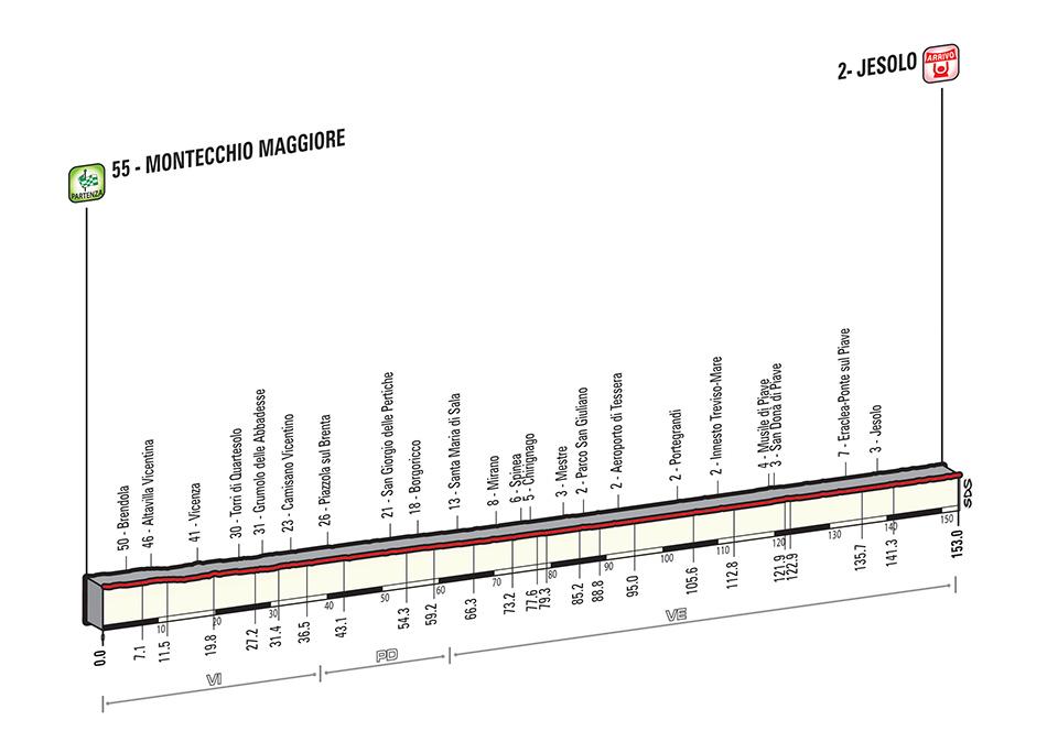 13ª etapa. Viernes 22 mayo. Montecchio Maggiore – Jesolo. 153 km