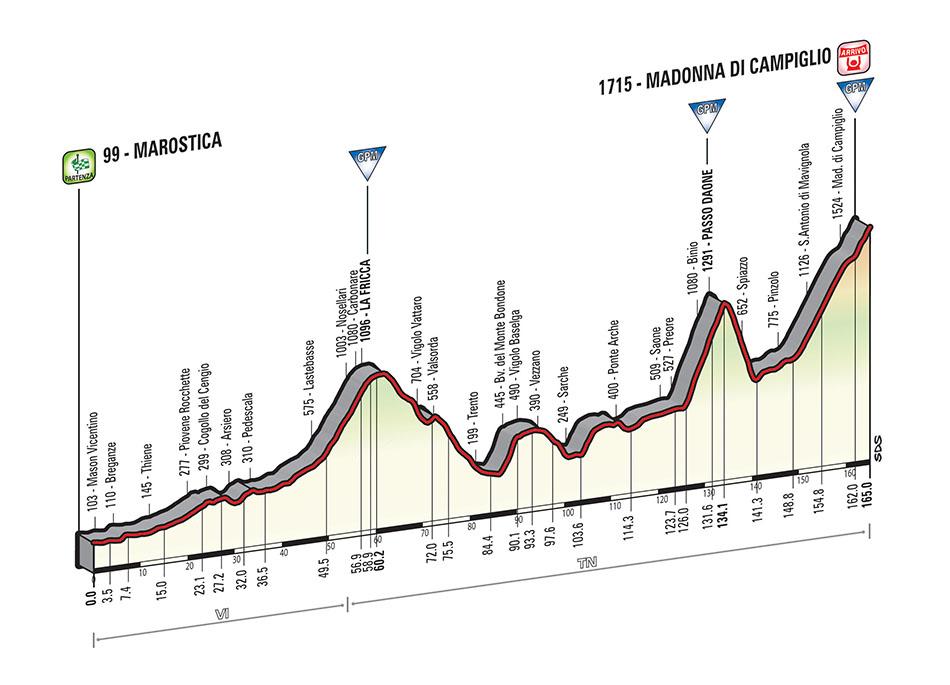 15ª etapa. Domingo 24 mayo. Marostica – Madonna di Campiglio. 165 km