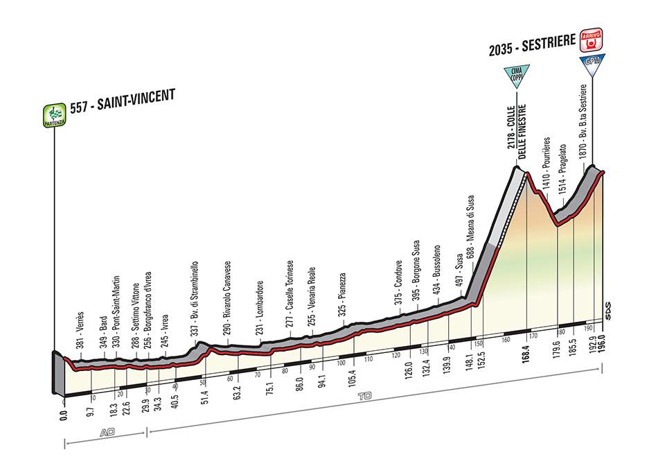 20ª etapa. Sábado 30 mayo. Saint-Vincent – Sestriere. 196 km