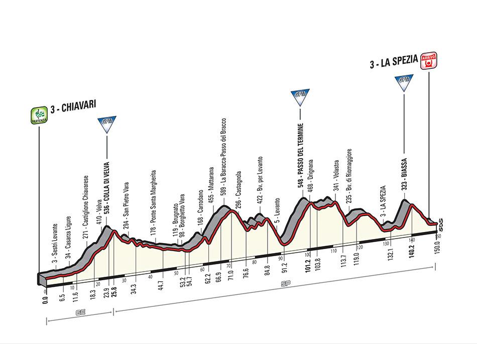 4ª etapa. Martes 12 mayo. Chiavari – La Spezia. 150 km
