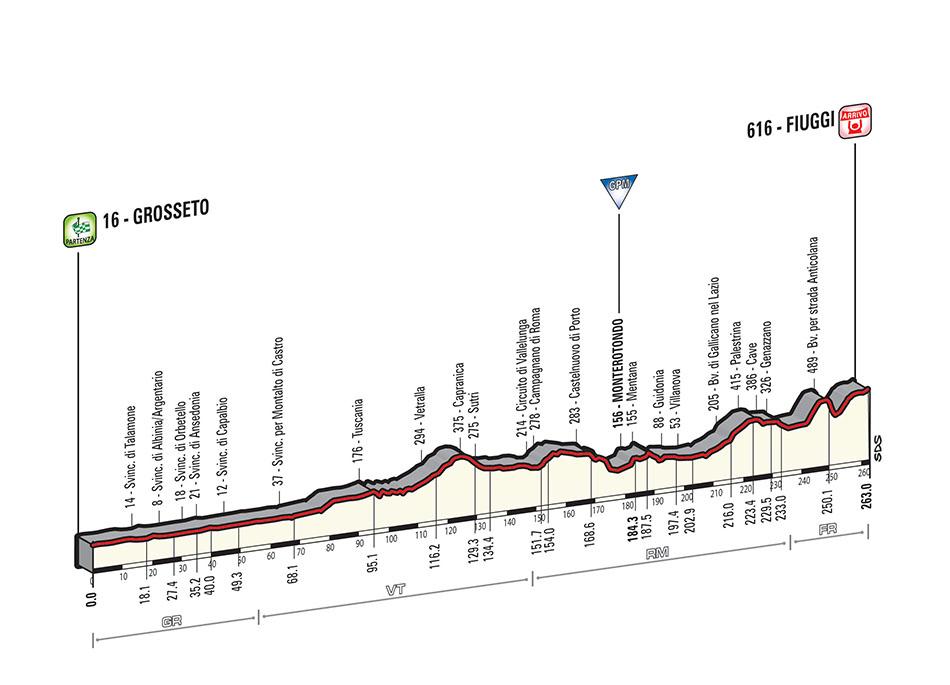 7ª etapa. Viernes 15 mayo. Grosseto – Fiuggi. 263 km