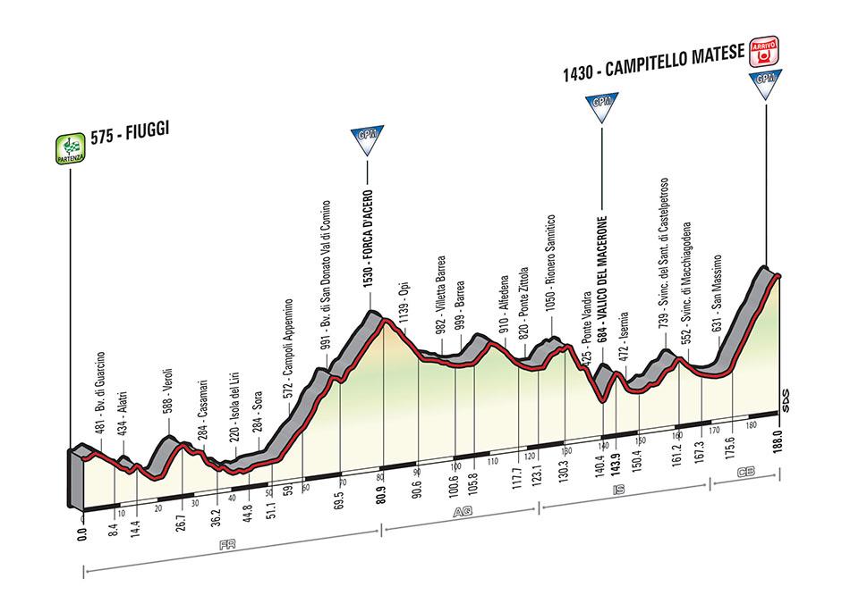 8ª etapa. Sábado 16 mayo. Fiuggi – Campitello Matese. 188 km