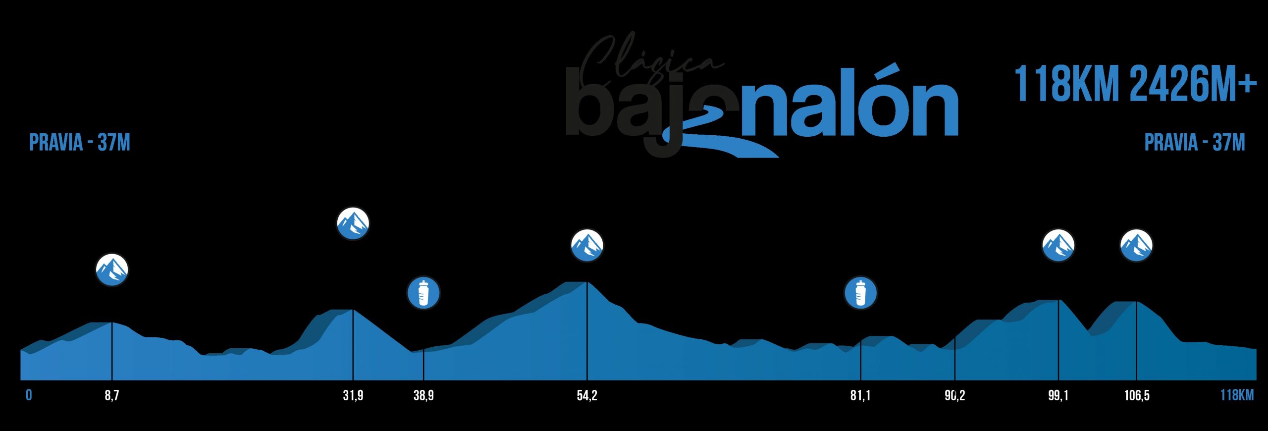 Con un prólogo de 2,5 km y un gran fondo de 122 km y 2400 de desnivel acumulado.