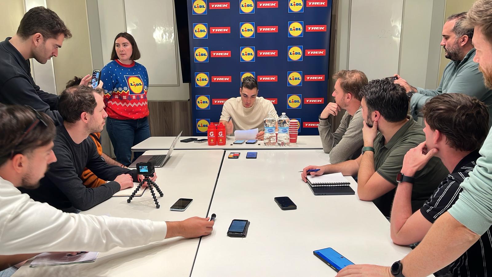 Juan Ayuso en su primera rueda de prensa como ciclista de Lidl