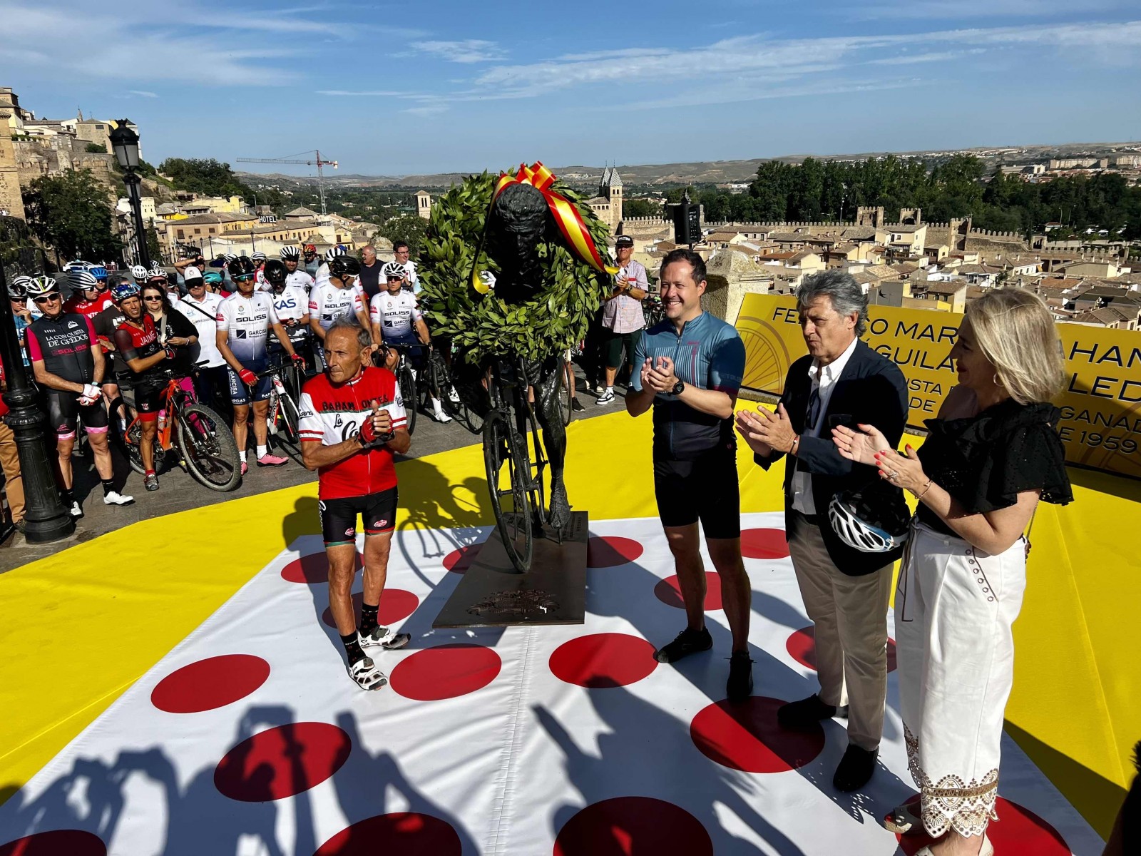 Más de medio millar de ciclistas de Toledo y de otras localidades cercanas, entre ellos el alcalde y algunos concejales del equipo de Gobierno, han recorrido con su bicicleta el itinerario entre el Paseo Merchán y la escultura del deportista, localizada en la zona del Miradero, obra de Javier Molina Gil y costeada por la Fundación Soliss A su llegada, el alcalde, acompañado de la vicealcaldesa, Inés Cañizares, y de otros integrantes del equipo de Gobierno, ha destacado la importancia que supone para la ciudad de Toledo una figura como la de Bahamontes.