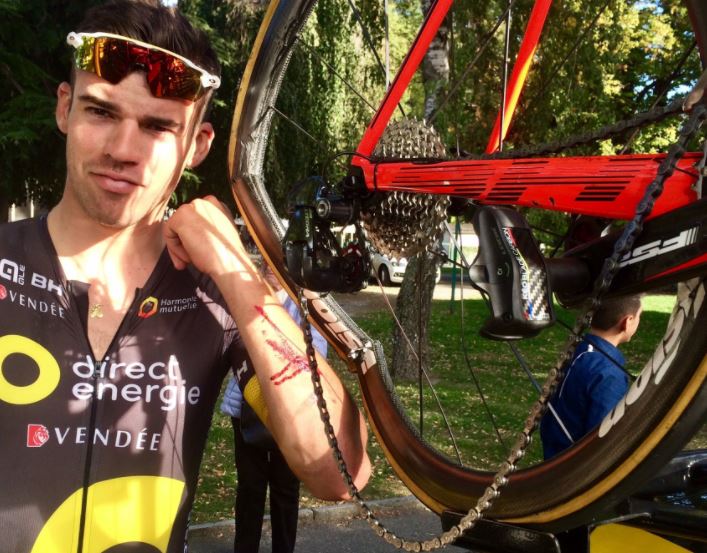 Lilian Calmejane (Direct Energie) tampoco se libró de la ‘curva maldita’. El propio corredor francés indicó a través de las redes sociales que se había estrellado en el mismo punto que Bakelants, pero sus daños se limitaron a «la rueda trasera en 8 y una pequeña lesión sin importancia. ¡Suerte en comparación con el impacto y la velocidad de la caída!«, afirmó Calmejane.