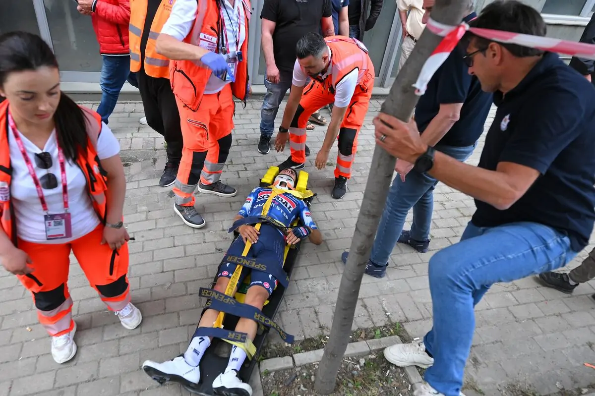 Mikel Landa abandonó en camilla de caerse en durante la primera etapa del Giro. Foto: Tim de Waele – Getty