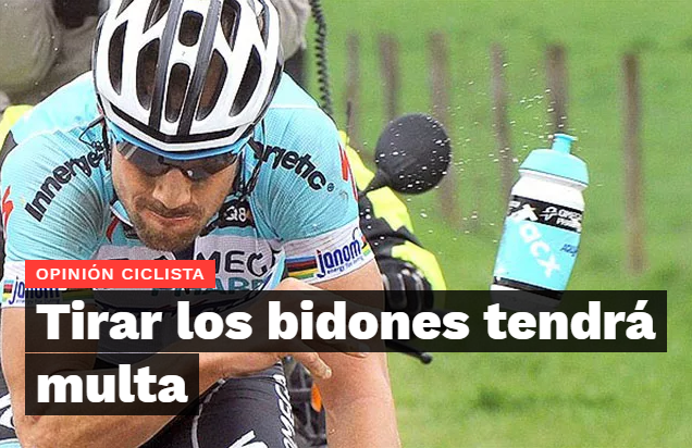 La UCI le pone coto a la imagen del ciclista lanzando un bidón vacío a la cuneta.