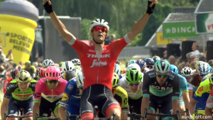 Cuando los otros equipos se percataron de la maniobra ya era demasiado tarde. El belga conquistó la etapa magistralmente y Ewan, con Stybar, se repartieron el podio. Mohoric aumentó ligeramente su ventaja en la general con De Bie a 3″. Mañana etapa llana propicia de nuevo para un desenalce para velocistas si no hay sorpresas entre Sint-Pieters-Leeuw y Lanaken (204,4km).