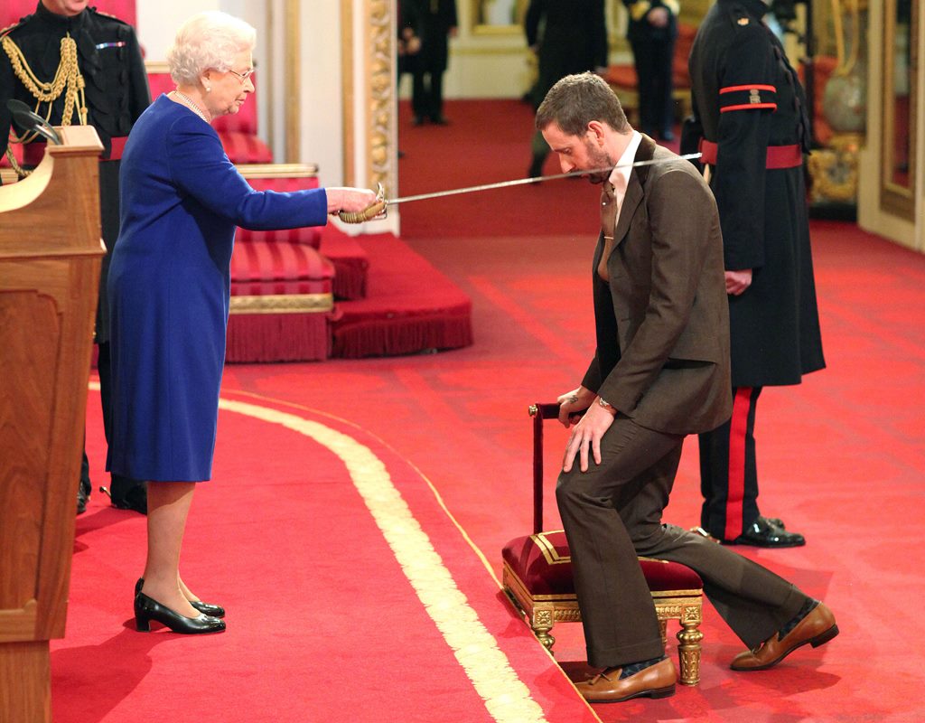 El ciclista británico Bradley Wiggins, ganador del Tour de Francia en 2012 y del oro olímpico ese mismo años en la prueba de contrarreloj, fue hoy condecorado por la reina Isabel II de Inglaterra por sus logros deportivos.