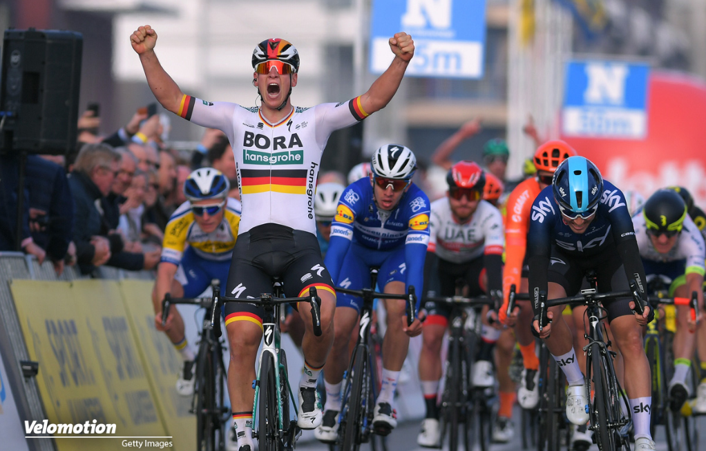 Pelucchi, Moschetti, Fabio Jakobsen o Mathis se verían fuera de la disputa por una caída apenas a 2km de la llegada, mientras tanto UAE, Bora, DQS, CCC, Sky y Lotto Soudal lanzaban el sprint. Esta vez, el alemán del Bora, ajustó mejor los tiempos que en el Nokereberg, y con su sello personal de fuerza y potencia que imprime sobre los pedales anticipó la volata a 150 metros de la meta, en la que el resto solo optar por repartirse el podio. Para el equipo es la novena victoria de la temporada previa al plato fuerte de las clásicas, en 2018, a estas alturas del año, solo había conseguido dos.