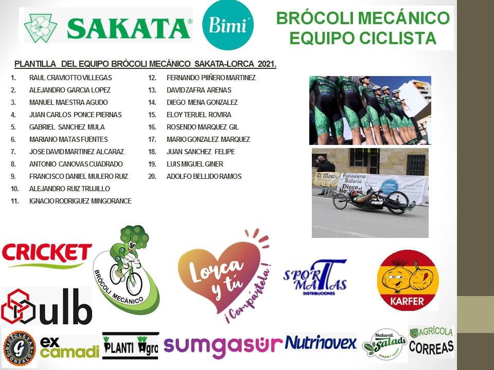 El equipo elite y sub-23 murciano Brócoli Mecánico, patrocinado por la empresa de semilla Sakata y afincado en Lorca, ha anunciado su plantilla para la próxima temporada con la gran novedad del exprofesional y exsubcamopeón del mundo de pista Eloy Teruel.