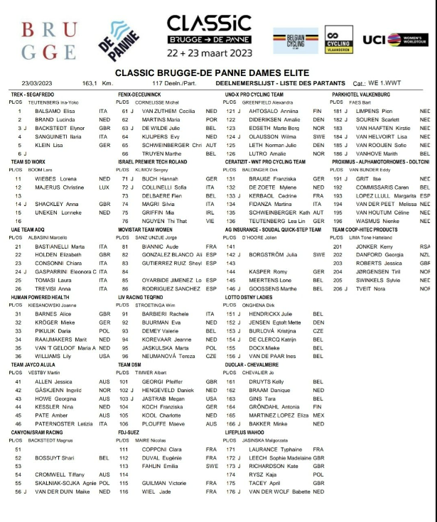 | DNF | ![]() | VAN DE PAAR Ines | Lotto Dstny Ladies | |||