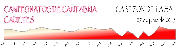 Así, la prueba para los cadetes dará comienzo a las 15.30 horas desde el Barrio La Pesa de Cabezón de la Sal, y completarán un recorrido de 62 kms. que atravesará las poblaciones de Villanueva, Mazcuerras, Cos, Carrejo en un circuito al que se le darán dos vueltas para seguir por Treceño, La Charola, Alto de Lamadrid, El Tejo, Treceño, El Turujal y llegada a Cabezón de la Sal sobre las 17 horas. En esta categoría Víctor Abad tiene la posibilidad de revalidar el título conseguido el año pasado en la mismo escenario.