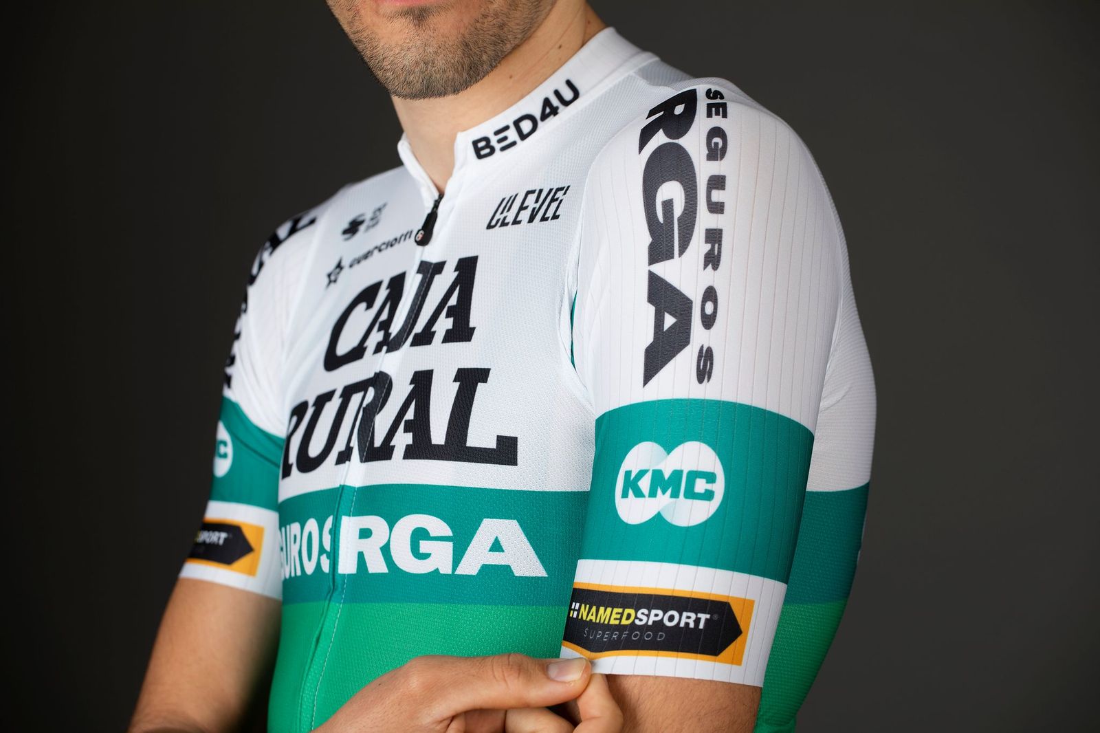 Una equipación en la que se mantiene el predominio del verde como color históricamente identificativo de Caja Rural-Seguros RGA, pero que añade importancia al blanco para ganar visibilidad y claridad. El maillot se ha elaborado con tejidos técnicos integrados por microfibras Microfresh ® y fibras elásticas (elastán y lycra), con cualidades y texturas que favorecen una alta transpiración. Una prenda que se ajusta perfectamente a la piel sin perder su confort, proporcionando un secado extra rápido.