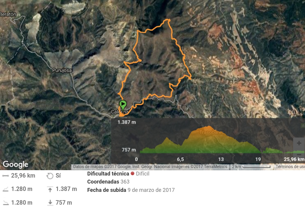 26 km. Andando o corriendo. Desnivel: 1.280 metros: