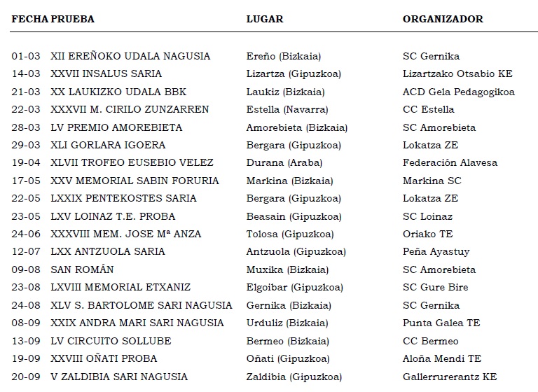Además de ésta, otras siete carreras se celebrarán en Bizkaia, nueve en Gipuzkoa, una en Araba y otra en Navarra.