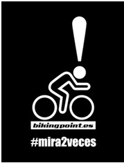 Biking Point, la red de 5 tiendas especializadas en el mundo del ciclismo, promueve la idea de concienciar a los conductores sobre la fragilidad del ciclista en las carreteras. Para ello lanza una campaña en las redes sociales, #mira2veces, acompañado de una pegatina recordatoria diseñada para colocar en los retrovisores con la finalidad de concienciar a los conductores de la existencia del ciclista. “Observar y mirar bien al girar o cambiar de carril puede evitar muchos accidentes, la pegatina te recuerda la presencia de los ciclistas.
