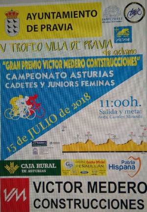 Este domingo se celebró en la localidad de Pravia el IV Trofeo VIlla de Pravia-Gran Premio Víctor Medero Construcciones, organizado por la Escuela Ciclista Santi Pérez-Mirador del Nalón y que se correspondía con el Campeonato de Asturias cadete masculino y femenino.