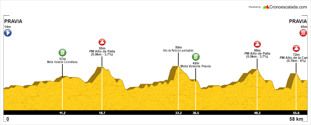 La prueba, organizada pro la E.C. Santi Pérez, se celebrará el próximo domingo, 15 de julio, tendrá una importante ración de montaña ya que los participantes afrontarán una triple subida al Alto de Palla (la segunda de ellas no será puntuable) antes de, ya en el último giro al circuito, hace un desvío para afrontar también el Alto de la Campana, cuya cima, situada a sólo seis kilómetros de la línea de meta, será, sin duda, el gran juez de la carrera.