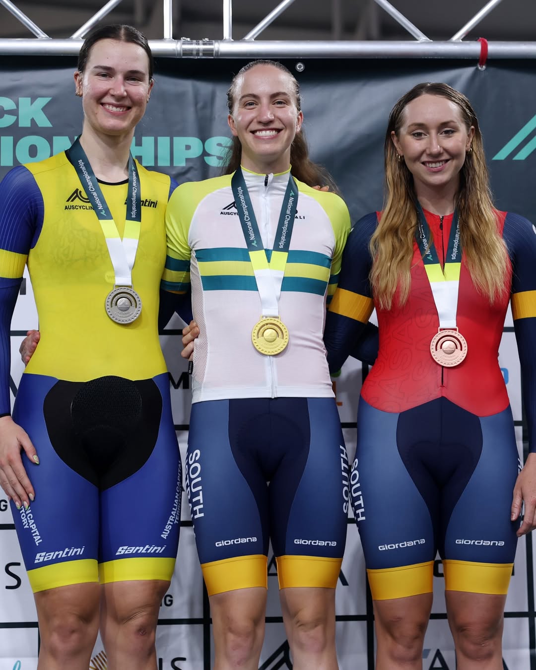 Después de haber ganado ayer el kilómetro, Claudia Marcks (ACT) se había apuntado el objetivo de la persecución. Pero Edwards (SA) fue cuatro segundos más rápida en la clasificatoria, con un notable tiempo de 4:32.651, con el que batía el récord nacional en poder de Maeve Plouffe desde el pasado año precisamente en este mismo evento y escenario (4:35.633). Por la tarde los tiempos fueron algo más lentos y la diferencia entre ellas más reducida, con dominio hasta mitad de carrera de la ciclista de la capital, aunque la australiana remontó hasta el final, revalidando el título logrado en 2025: 4:37.082 a 4:38.328. Precisamente Plouffe (SA) era la vencedora del bronceen su enfrentamiento con Alyssa Polites (VIC), 4:39.116 a 4:40.531.