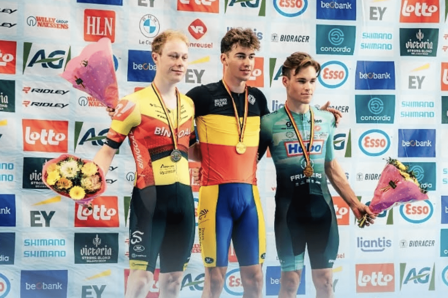 Pasando a las pruebas masculinas, Bernard, Brent van Mulders y Stan Dens componían el podio del scratch, con idénticas medallas de oro y plata en la eliminación, donde sólo cambio el bronce, para Mathijs van Strijthem, doble campeón del mundo junior este mismo año en China.