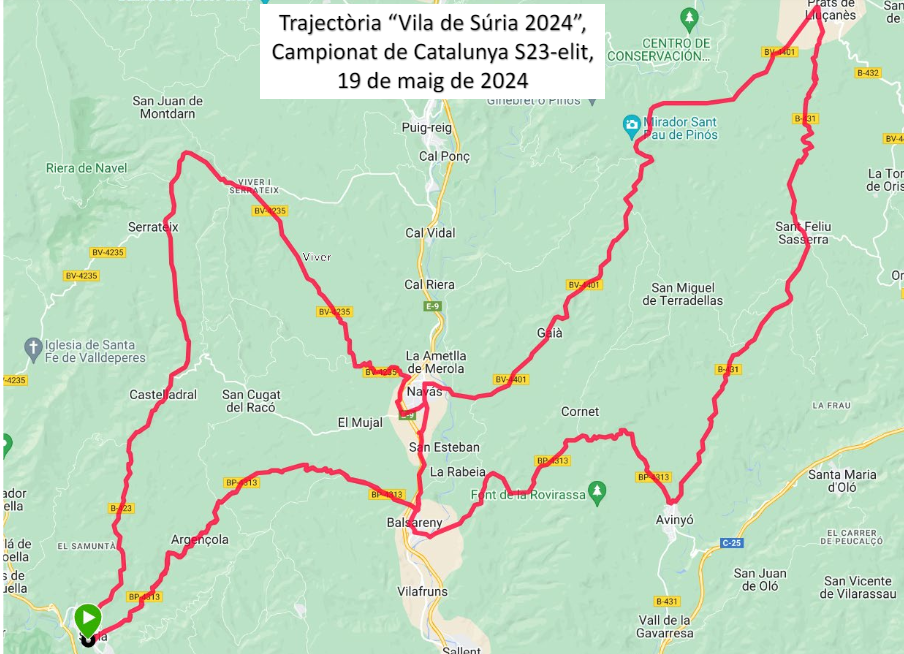 Súria (Bages) ha acollit aquest diumenge 19 de maig el Campionat de Catalunya elit/sub23 masculí de carretera, que ha coronat al corredor de primer any Ivan Viladrich (Penya Ciclista Baix Ebre) com a nou campió de Catalunya absolut.