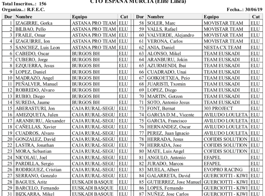 Con la prueba elite el domingo por la mañana, a partir de las 9:00, se cierran los Campeonatos de España 2019 en Murcia, que tendrán los dos últimos títulos en juego, para élites profesionales y para élites.