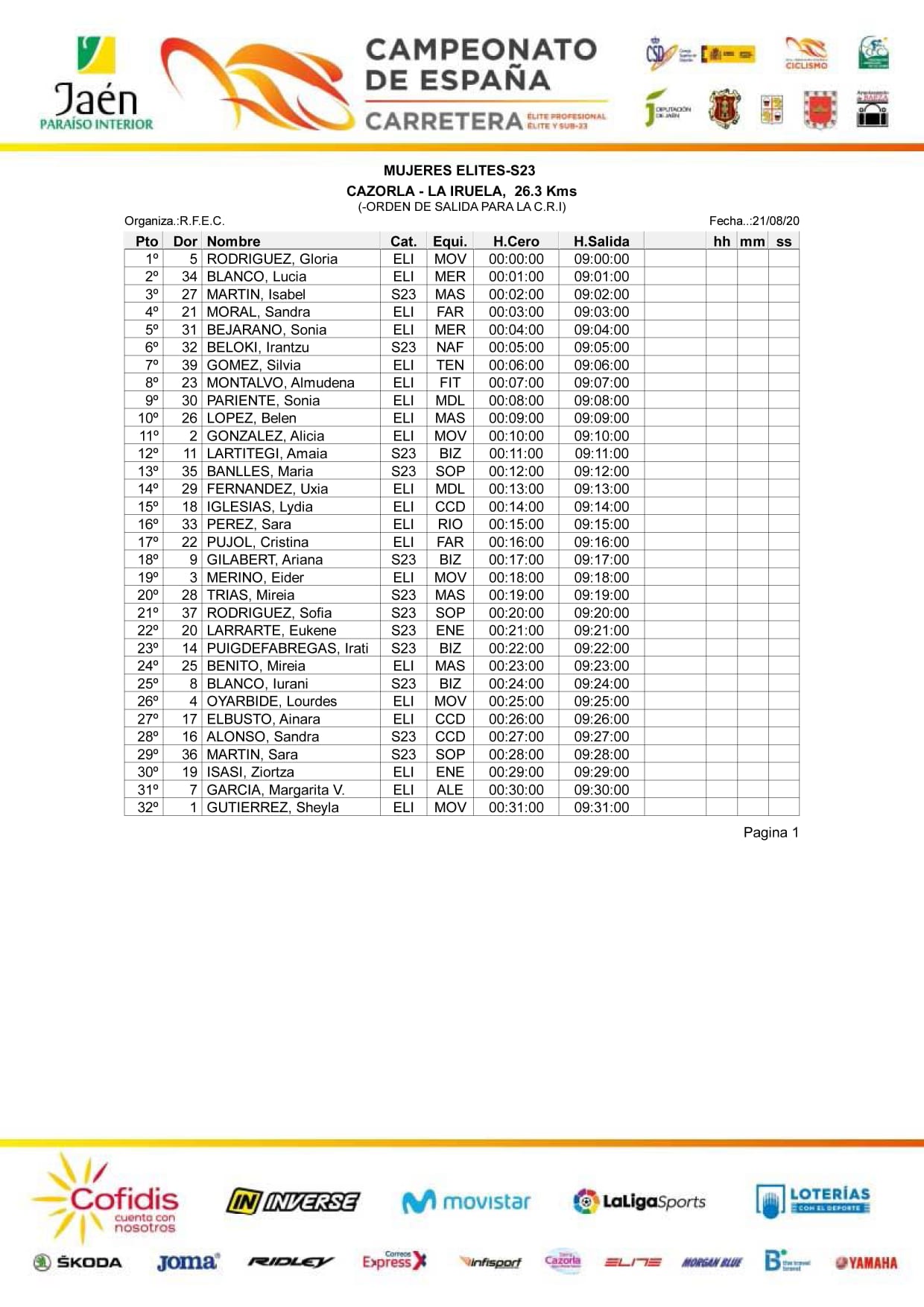 Los Campeonatos de España 2020, que este año se celebrarán en Jaén, arrancarán el viernes, 21 de agosto, con la disputa de la prueba CRI Elite y Sub-23 femenina, que tendrá un recorrido de 26,3 kilómetros y que contará con Mavi García y Sheyla Gutiérrez con sus principales favoritas a revalidar un título que ya consiguieron en 2018 y 2019, respectivamente.