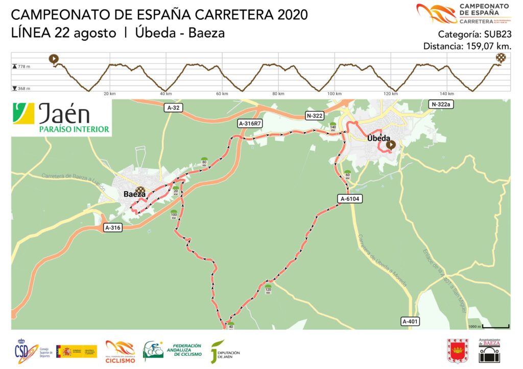 La cita sub-23 masculina, ya por la tarde, también con salida en Úbeda y llegada en Baeza, constará de un recorrido de 159 km. Tal y como señala Pascual Momparler, “los recorridos están aún sujetos a modificaciones por factores como la climatología, que pueden incidir en que nos veamos en la tesitura de tener que variarlos”.