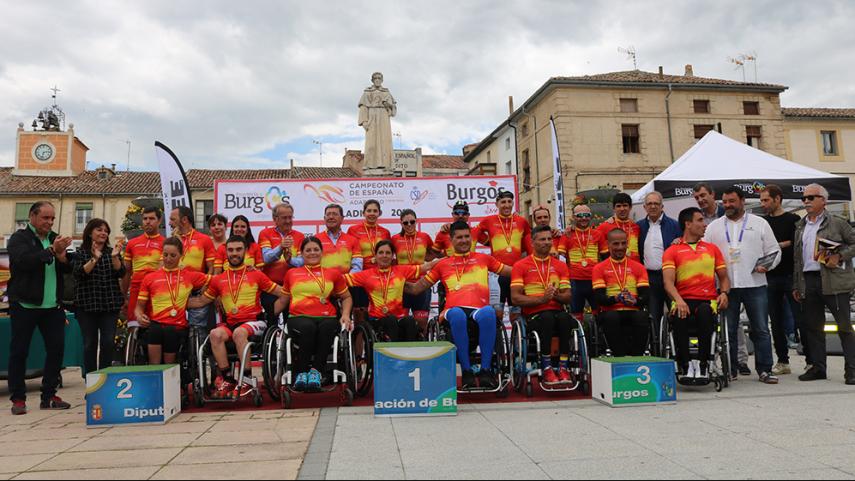 Los cinco conjuntos participantes, Catalunya, Galicia, Madrid, Comunitat Valenciana y Handbike NoLimits, han sido los encargados de inaugurar estos Campeonatos de España, que cuentan con unos recorridos propios de Copa del Mundo y una participación sin precedentes en la historia del certamen. Desde la bella Plaza Mayor de Villadiego se ha dado la salida a la primera prueba del programa del nacional de Ciclismo Adaptado, que como auguraban los pronósticos ha sido dominada de principio a fin por la Selección Catalana, que ha obtenido su cuarto título de forma consecutiva.
