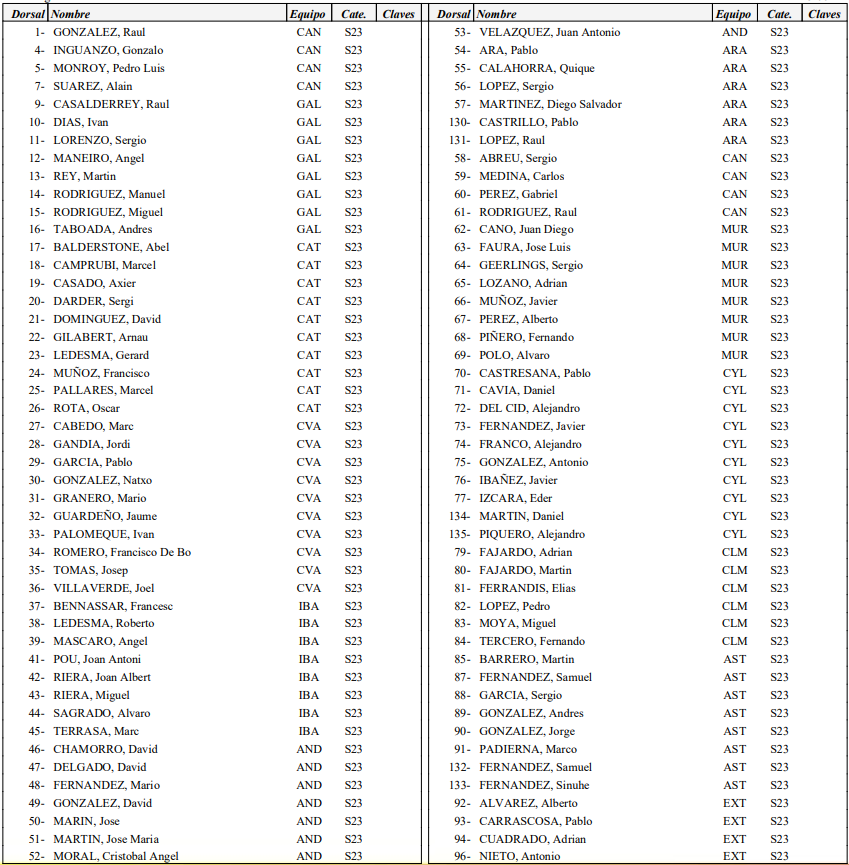 Otros ciclistas llamados a jugar un papel importante en la cita sub23 serán José Luis Faura (Murcia), Pablo Castrillo (Aragón), Javier Serrano (Madrid), Pablo García Francés (Madrid), Sinuhé Fernández (Asturias), Mikel Retegi (Navarra) o Enekoitz Azparren (Euskadi). Todos ellos tendrán que tratar de zafarse del control del potente equipo catalán, que presentará un completísimo bloque compuesto por Camprubí, Balderstone, Gilabert, Pallarés o al ganador de la Copa de España Fran Muñoz, que será uno de los grandes favoritos, y que si logran realizar un buen trabajo grupal podrían determinar con su trabajo el rumbo de la carrera.