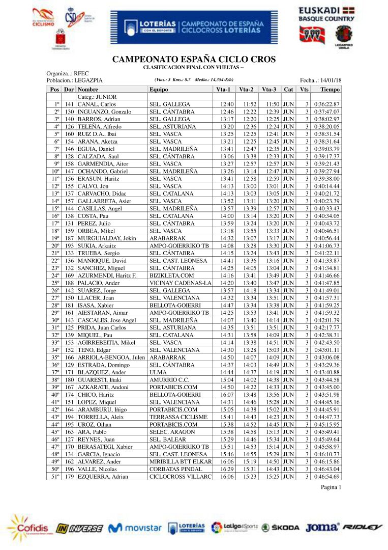 3 Adrián Barros GAL 38:02@loterias_es pic.twitter.com/7hNv0ZMSow— RFEC (@RFECiclismo) 14 de enero de 2018