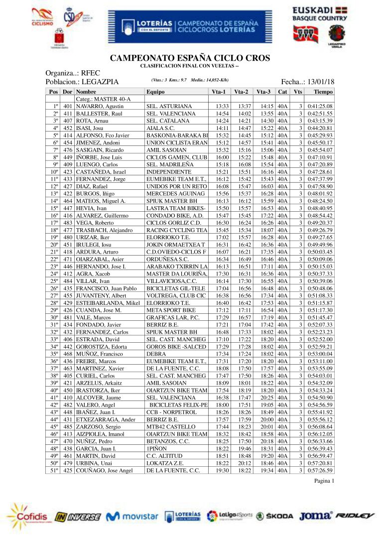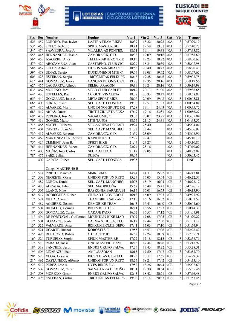 CLASIFICACIONES COMPLETAS MÁSTER 40: