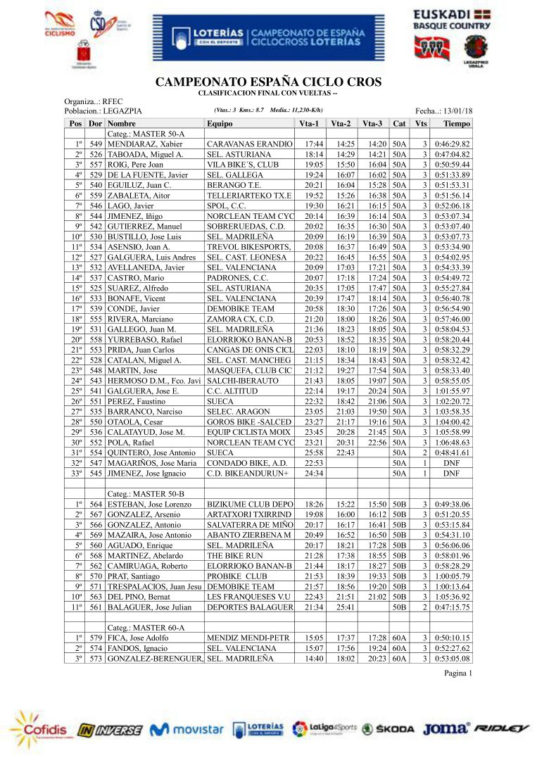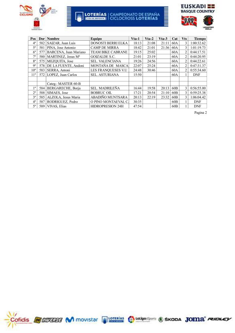 CLASIFICACIONES COMPLETAS MASTER 50 Y 60: