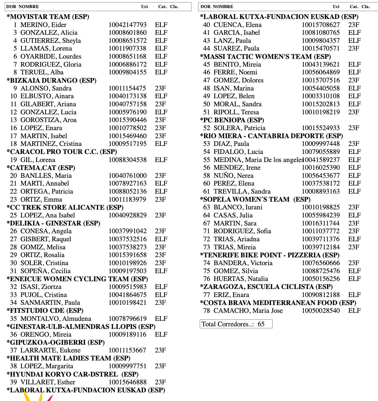 | 17 | Llamas Lorena | Movistar Team | ,, |