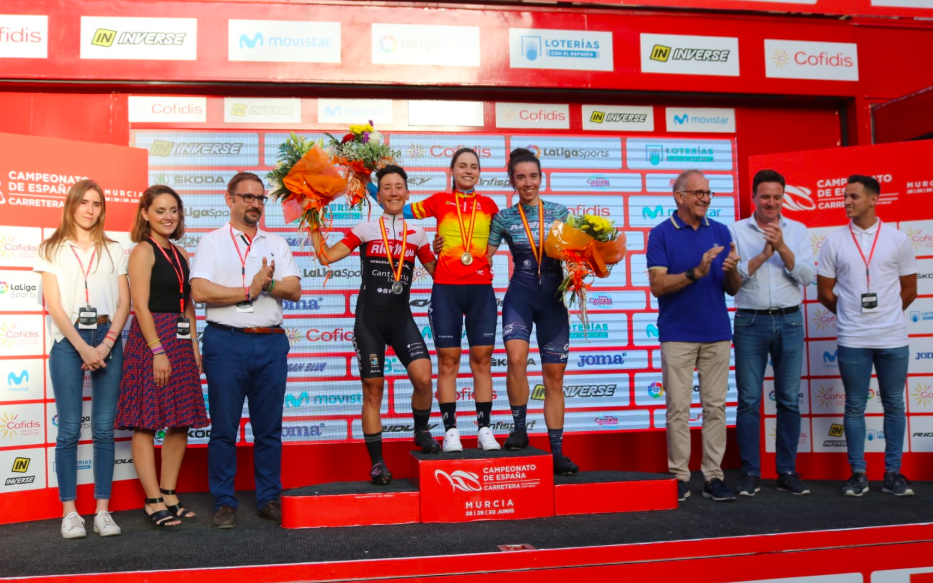 Sus compañeras de escapada también tuvieron premio rompiendo la hegemonía del equipo telefónico. Segunda, y medalla de plata, sería Irene Méndez (Río Miera Cantabria) llegando también en solitario tras soltar a Mireia Benito (Massi Tactic) en las rampas al Castillo de Lorca, quien finalizaría tercera y se colgaría el bronce.