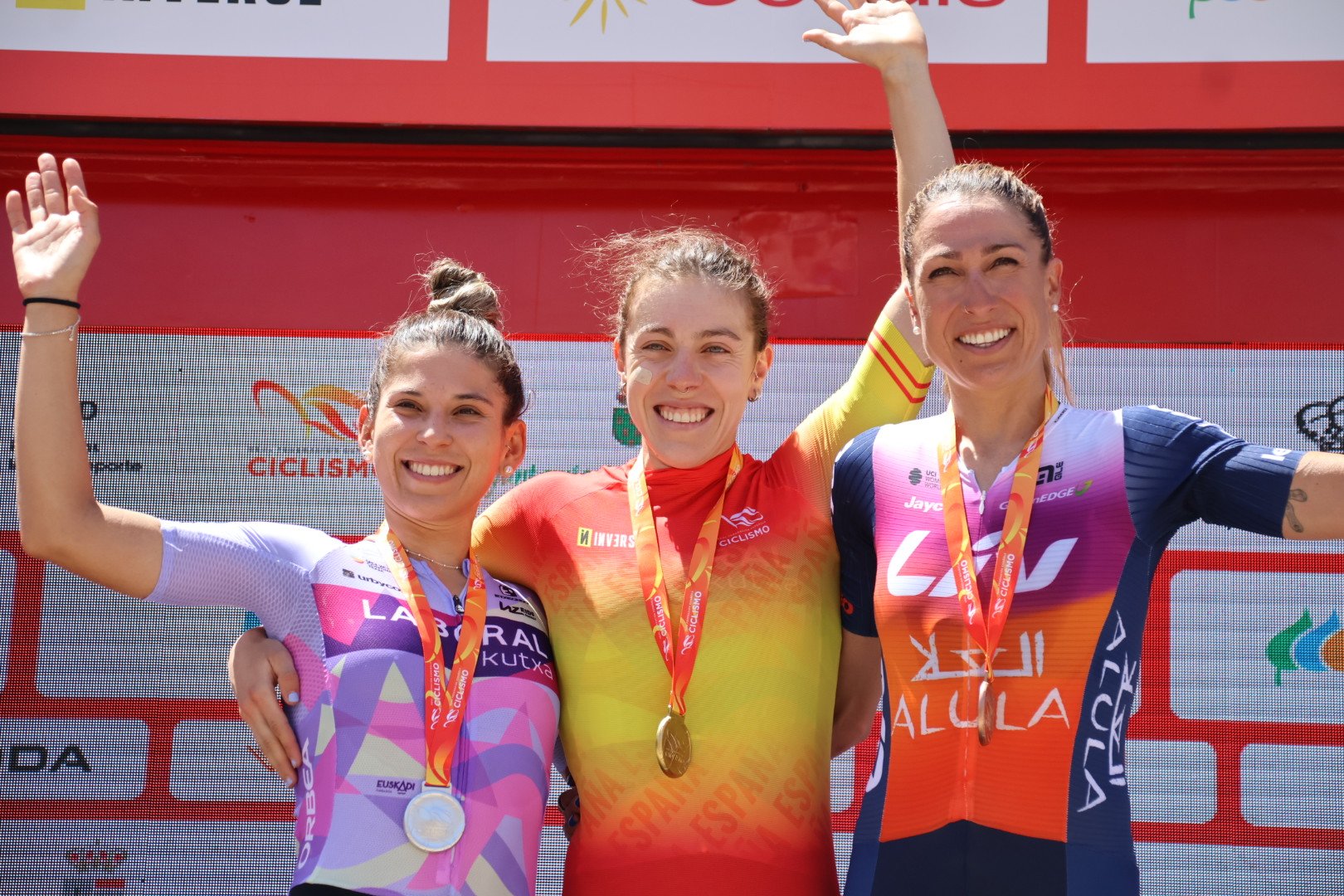 Sin embargo, en el repecho final, Mavi García gastó sus últimas fuerzas, soltó a todas sus rivales y dio caza a la líder, tomando el mando a poco más de un kilómetro de la meta. Ostolaza no bajó los brazos y gestionó mejor este último esfuerzo, al que llegó mucho más fresca que su rival. La guipuzcoana no perdió de vista a Mavi y logró alcanzarla en el exigente empedrado final. Blanco pudo regresar y todo se decidió en un sprint agónico en el que las dos ciclistas moradas superaron a la anterior campeona de España. Ostolaza se hizo con el oro y Blanco, con la plata, por delante de la pentacampeona. Sara Marín fue cuarta y la mejor movistar, por delante de Benito (5ª), Santesteban (6ª) y Alonso (7ª). Tras ellas entró Eneritz Vadillo, aventajando en unos pocos segundos a Paula Blasi para hacerse con el título sub-23.