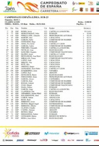 Javier Romo, de la selección de Castilla-La Mancha, se proclamó campeón de España de fondo en carretera en el circuito de Jaén entré Úbeda y Baeza (25 kms x 5 vueltas tras la modificación del recorrido más abajo extendida). El extriatleta toledano (Villafranca de los Caballeros, 6 de enero de 1999 -21 años), pudo zafarse del grupo de fugados a falta de 45 kms para el final para imponerse en solitario en la línea de meta completando la exhibición en solitario. La plata fue para Jokin Murguialday (Esukadi) y cerraría el podio colgándose el bronce Eduardo Pérez-Landaluce (Asturias).