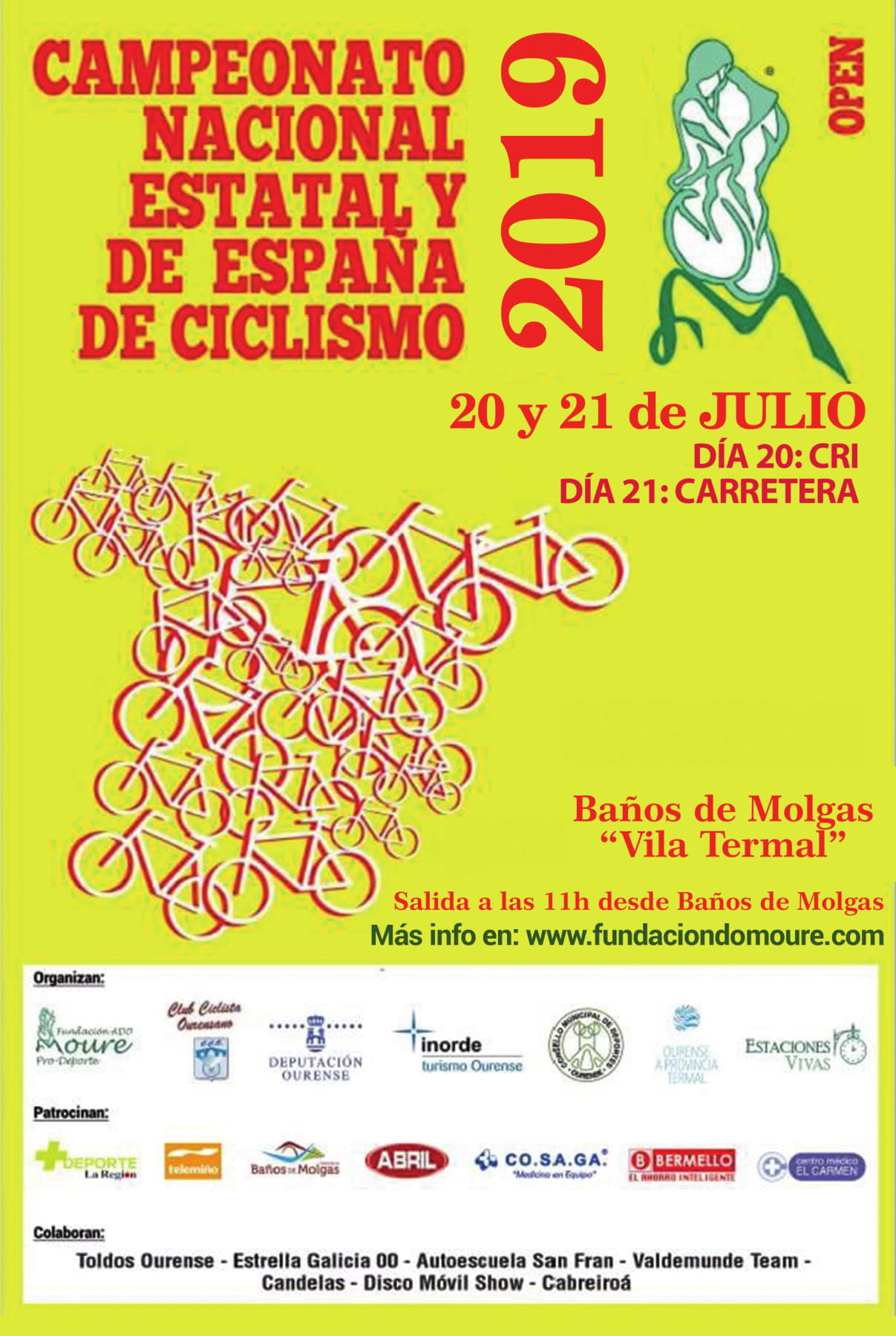 El Club Ciclista Ourensano, en colaboración con la Fundación ADO Moure Pro Deporte, dentro de su programa de pruebas open para la temporada 2019 en la provincia de Ourense, presenta la prueba Campeonato de España de Ciclismo, una prueba en línea, el 20, y una contrarreloj individual el 21 de julio.