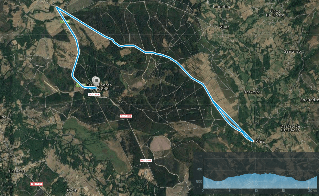 Un nuevo recorrido que tenia como salida y llegada el Santuario Dos Milagros, y un total de 17Km. La primera parte favorable ya que la capilla se encuentra en un alto, luego una zona llana, apta para grandes especialistas y un final en subida que servia para entrar en el recinto del Santuario.