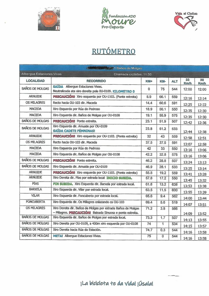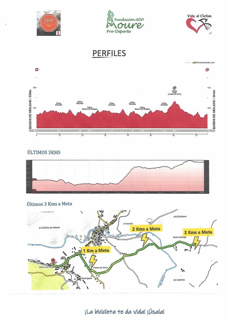A las 11:10 se daba la salida neutralizada y tras pasar por el concello de Baños de Molgas se daba la salida lanzada. Ya en la primera vuelta de carrera el ritmo fue altísimo, rodando con una media cercana a los 46 km/h, debido a este fuerte ritmo impuesto por el pelotón hizo imposible que cuajaran los numerosos intentos de fuga, y no fue hasta el paso por el puerto de Pías en el que se fraccionó la prueba en varios grupos quedándose 25 ciclistas por delante que fueron los que se disputaron los puesto de honor.